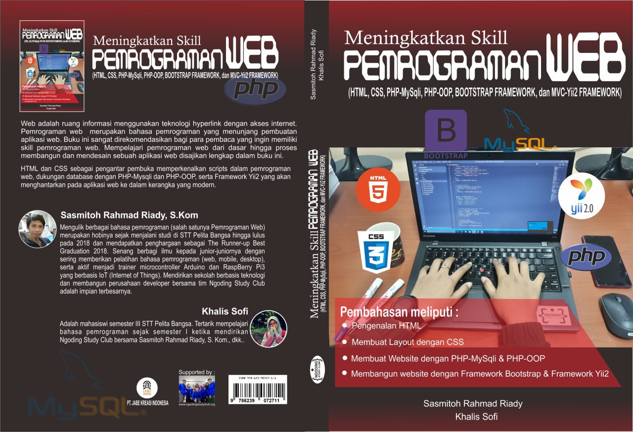 Pemrograman web merupakan bahasa pemrograman yang menunjang pembuatan aplikasi web. Buku ini sangat direkomendasikan bagi para pembaca yang ingin memiliki skill pemrograman web. Mempelajari pemrograman web dari dasar hingga proses membangun dan mendesain sebuah aplikasi web disajikan lengkap dalam buku ini. HTML dan CSS sebagai pengantar pembuka memperkenalkan scripts dalam pemrograman web, dukungan database dengan PHP-Mysqli dan PHP-OOP, serta Framework Yii2 yang akan menghantrakan pada sebuah aplikasi web ke dalam kerangka yang modern.